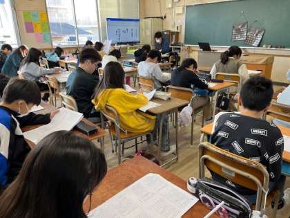 12月4日(月)1時間目、5年1組は国語で経年調査の過去問に取り組んでいました。