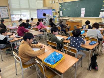 12月4日(月)2時間目、3年1組は算数で単位の大きさの関係について調べていました。