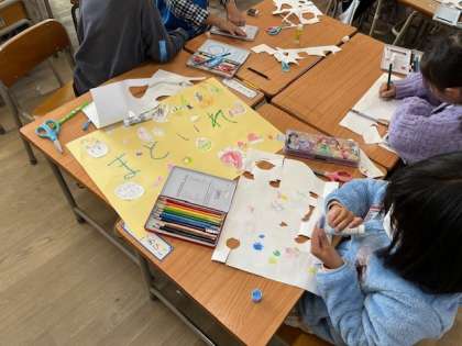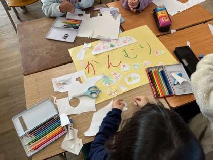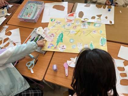 12月6日(水)1時間ものを目、1年2組は生活科でポスターを作っていました。子どもに聞きますと、自分たちが作ったおもちゃで1組の子を招待して遊んでもらうのだそうです。