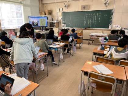 12月6日(数位)1時間目、4年2組は国語で文末の書き方を学習していました。