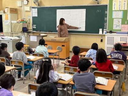 12月8日(金)2時間目、1年1組は国語で作文用紙の使い方を学習していました。