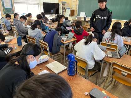 12月8日(金)2時間目、6年1組は学校新聞に載せる自分の似顔絵を描いていました。