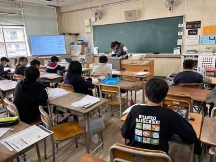 12月11日(月)1時間目、5年2組は家庭科で「3つの食品のグループとその働き」についてワークシートを使って学習していました。