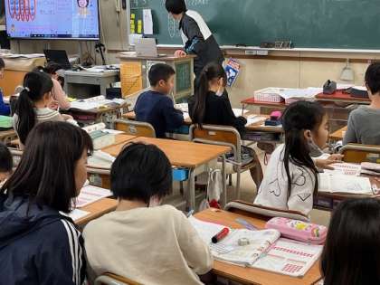 12月11日(月)4時間目、2年1組は算数で図を使って考えていました。