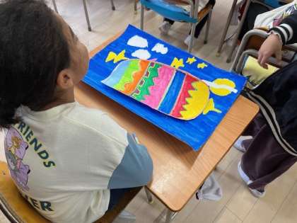 12月11日(月)5時間目、2年2組は図工で「ひみつの たまご」を作っていました。