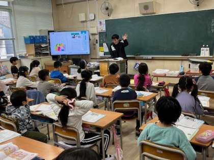 12月12日(火)4時間目、2年1組は道徳で「ハンナのなみだ」を学習していました。学習するにあたって、「外国」の意味から確かめていました。