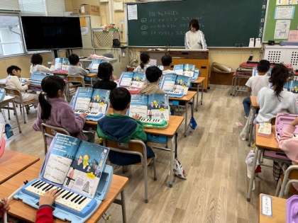 12月12日(火)4時間目、1年1組は音楽で「きらきらぼし」を鍵盤ハーモニカで演奏していました。