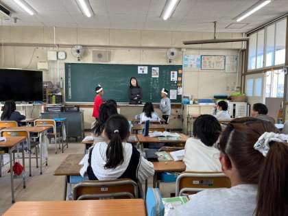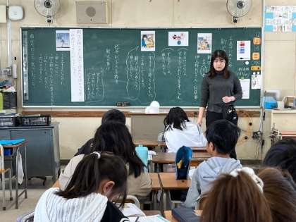 12月13日(水)3時間目、4年1組は道徳で「新次のしょうぎ」を学習しました。ずるいことをして勝った新次の気持ちを想像しました。新次にささやく悪魔と天使の役を分担し演じる場面もありました。