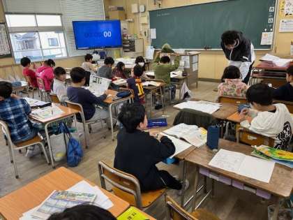 12月15日(金)2時間目、3年2組は理科で豆電球に明かりがつくつなぎ方を考えたり、電気を通すものと、通さないものを考えていました。