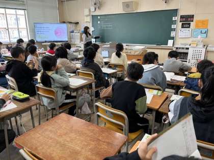 12月19日(火)1時間目、5年2組は算数で円周の長さと直径の長さの変わり方について調べていました。