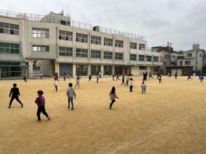 1月10日(水)業間の休み時間に子どもたちは、運動場を走り回って遊んでいました。今日は日差しがないせいか、遊ぶ人が少なく感じました。