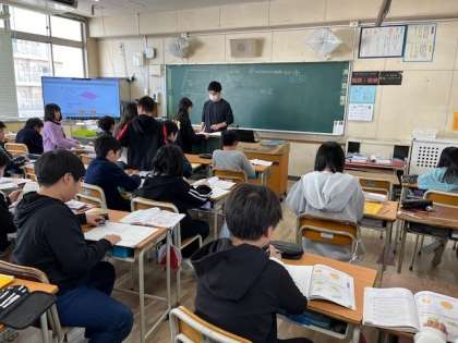 1月12日(金)3時間目、5年1組は算数で平行四辺形の面積を長さを測って求める方法を考えていました。