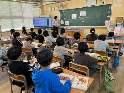 1月12日(金)5時間目、3年1組は算数で三角形を作って仲間分けをしていました。