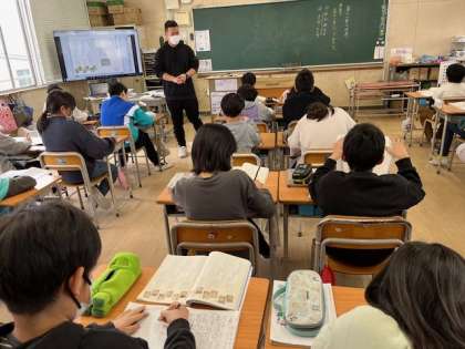 1月15日(月)3時間目、4年2組は国語で百人一首について学習していました。