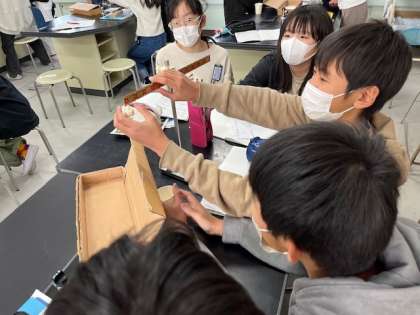 1月16日(火)5時間目、6年1組は理科で「てこのはたらき」を学習していました。てこがつり合う条件を探して実験をしていました。結論は次の時間に持ち越されました。どのような「まとめ」になるのでしょうか?