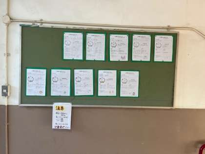1月17日(水)3階の掲示板に4年生の「3学期がんばりカード」が掲示されていました。一人ずつ漢字を選んでいました。「夏」「動」「挑」「強」「勉」「協」「国」が描かれていました。それぞれ何を目標にしているかを想像してみてください。