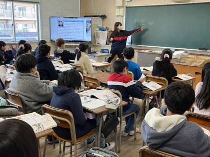 1月17日(水)1時間目、5年2組は社会科で天候などの予測情報をもとに製品の作る量を決めている会社について学習していました。