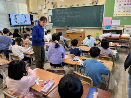 1月17日(水)1時間目、1年2組は生活科でかみとんぼを作っていました。