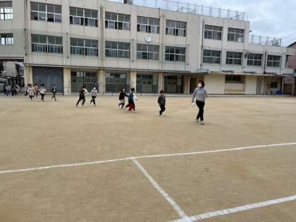 1月19日(金)昨日雨でできなかった避難訓練をしました。まず地震が起きた後、全員が運動場に避難しました。その後、津波警報が発令されたという想定で3階以上に避難しました。粉浜幼稚園からも避難に来られて一緒に訓練をしました。