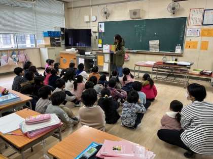 1月23日(火)お話ベルによるお話会が2年生で行われました。子どもたちは集中してお話を聞いていました。