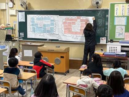 1月24日(水)1時間目、1年1組は「ふわふわことば」と「ちくちくことば」の木を完成させていました。「ふわふわことば」が増えていくといいですね。