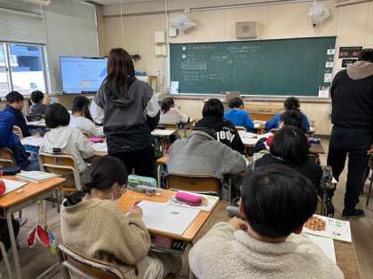 1月24日(水)2時間目、5年2組は算数で平行四辺形の高さと面積の関係を調べていました。