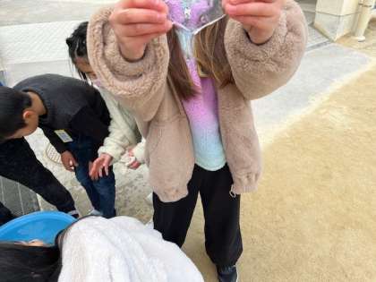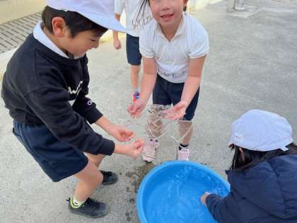 1月24日(水)昨夜からの冷え込みで水を張ったたらいに氷ができていました。