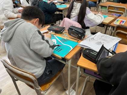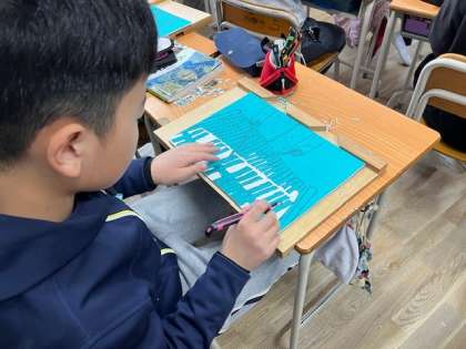 1月26日(金)2時間目、5年1組は図工で版画をひたすら彫っていました。