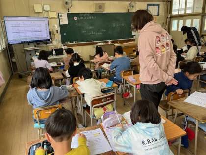 1月29日(月)3時間目、2年2組は算数で数直線の読み方を考えていました。