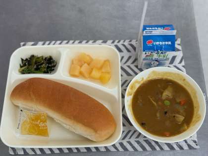朝会では健康委員会の児童から、食べ物のいのちや調理員さんに感謝を伝える1週間にしよう、と全校に伝えました。