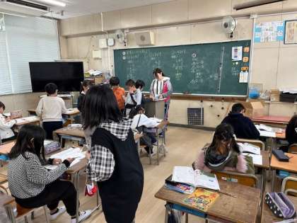 1月30日(火)3時間目、4年1組は算数で筆算の仕方を考えて、練習問題に取り組んでいました。