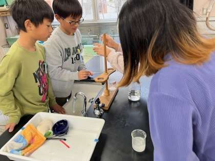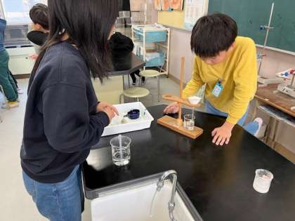 1月30日(火)4時間目、5年2組は理科で水にとけている食塩やミョウバンを取り出す方法を考え実験していました。
