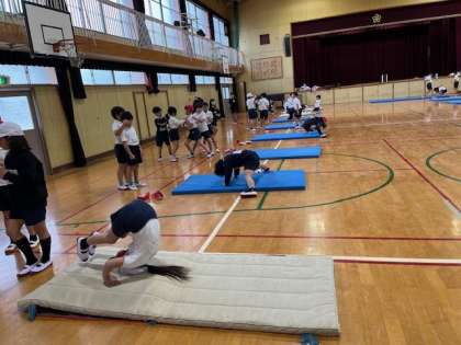 2月5日(月)3時間目、3年は体育でマット運動をしていました。