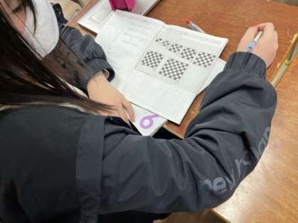 2月5日(月)5時間目、6年1組は算数でマスを使って問題を解いていました。