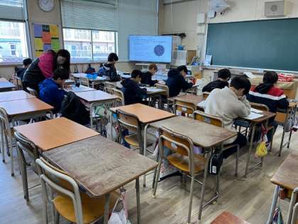 2月6日(火)1時間目、5年2組は算数で、クラスを2分割して学習していまいた。