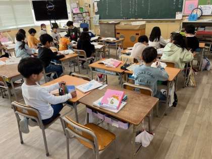 2月8日(木)2時間目、1年2組は国語で1年間を振り返って作文を書いていました。