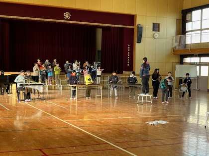 2月9日(金)1時間目、4年1組は音楽で「茶色の小びん」の合奏の練習をしていました。