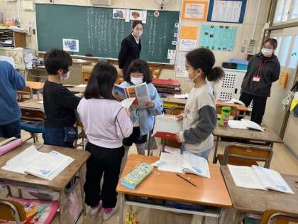 2月13日(火)2時間目、2年2組は国語で「かさこじぞう」を学習していました。「かさこじぞう」の始まりと終わりを比べて、変わったものと変わらなかったものを、その理由を教科書から読み取っていました。