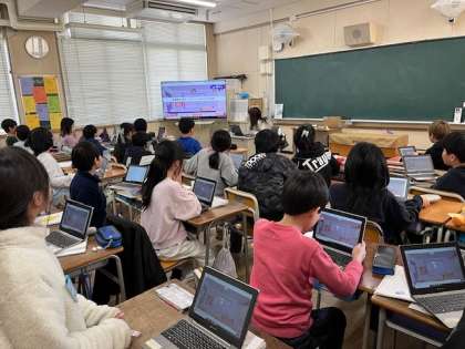 2月13日(火)5時間目、5年2組は国語で「方言と共通語」を学習していました。学級全員でカフートというアプリを使って「方言クイズ」を楽しんでいました。