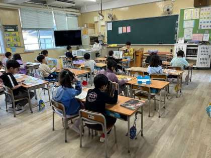 2月14日(水)読書タイムに1年1組は集中して本を読んでいました。