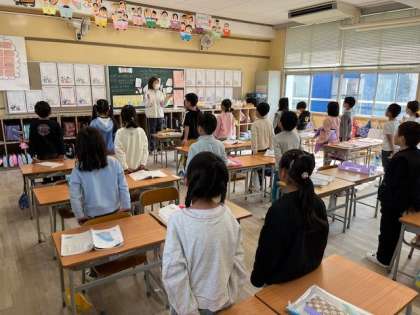 2月14日(水)4時間目、1年1組は国語で「風のまたさぶろう」の暗唱をしていました。