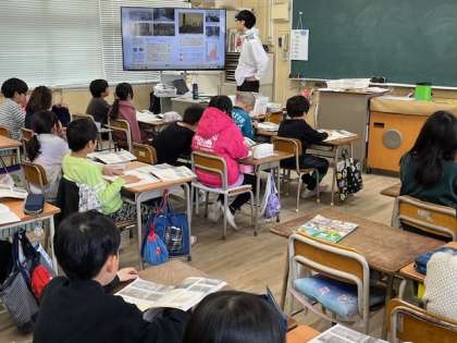 2月15日(木)2時間目、3年2組は社会科で大阪市の公共施設ができたころの学習をしていました。