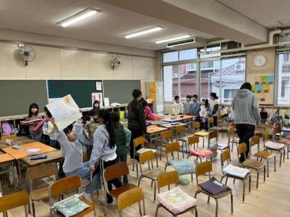 2月19日(月)1時間目、2年2組は学習発表会の練習でグループごとに練習をしていました。