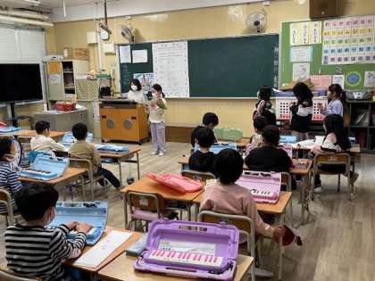 2月19日(月)1時間目、1年1組は歌の練習をしていました。