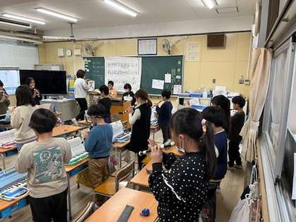 2月19日(月)1時間目、3年1組は合奏の練習をしていました。