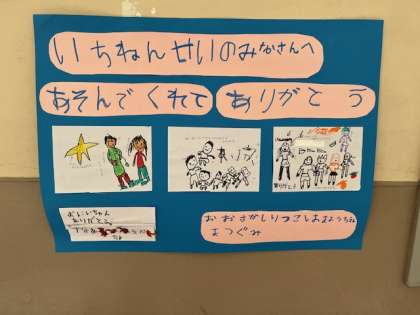 先日行われた1年生との交流会のお礼のメッセージが届き、掲示されています。