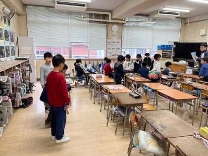 2月20日(火)1時間目、2年1組は学習発表会の練習をしていました。グループに分かれて、できるようになったことを発表するようです。