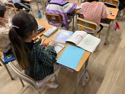 2月22日(木)1時間目、1年1組は国語で「スイミー」の学習をしていました。