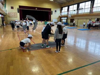 2月22日(木)2時間目、3年は体育でマット運動の準備をしていました。