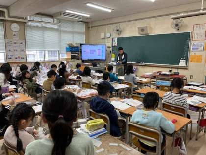 2月22日(木)3時間目、2年1組は算数で立方体や直方体の展開図を切り開いていました。
